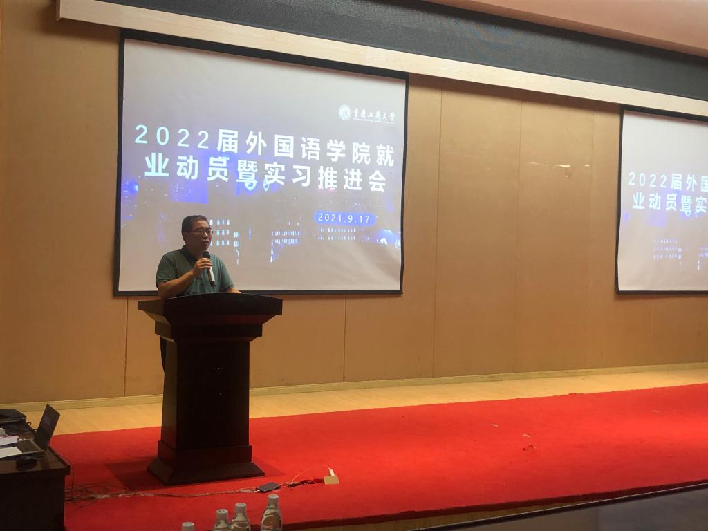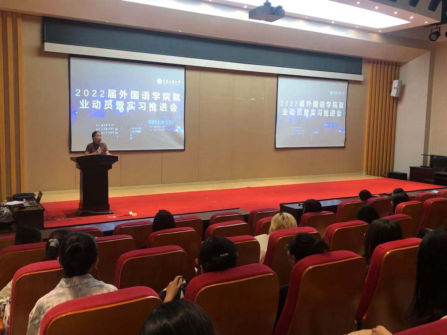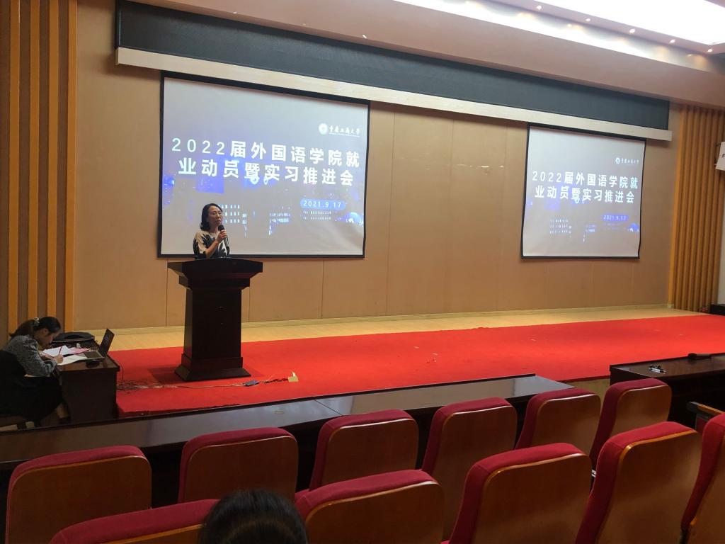 2021年9月17日,永利集团3044am在田家炳209举办了外国语2022届就业动员暨实习推进会,根据疫情防控要求,此次大会分为商务英语专业、英语法语专业两场举行,由学院辅导员黄颖婕主持,永利集团3044am党委书记唐春秋、院长周琳、副书记吴欢欢、英语系主任邹莉、英语系副系主任宋敏子、法语系主任曹鹏以及2022届全体学生参加了本次会议。