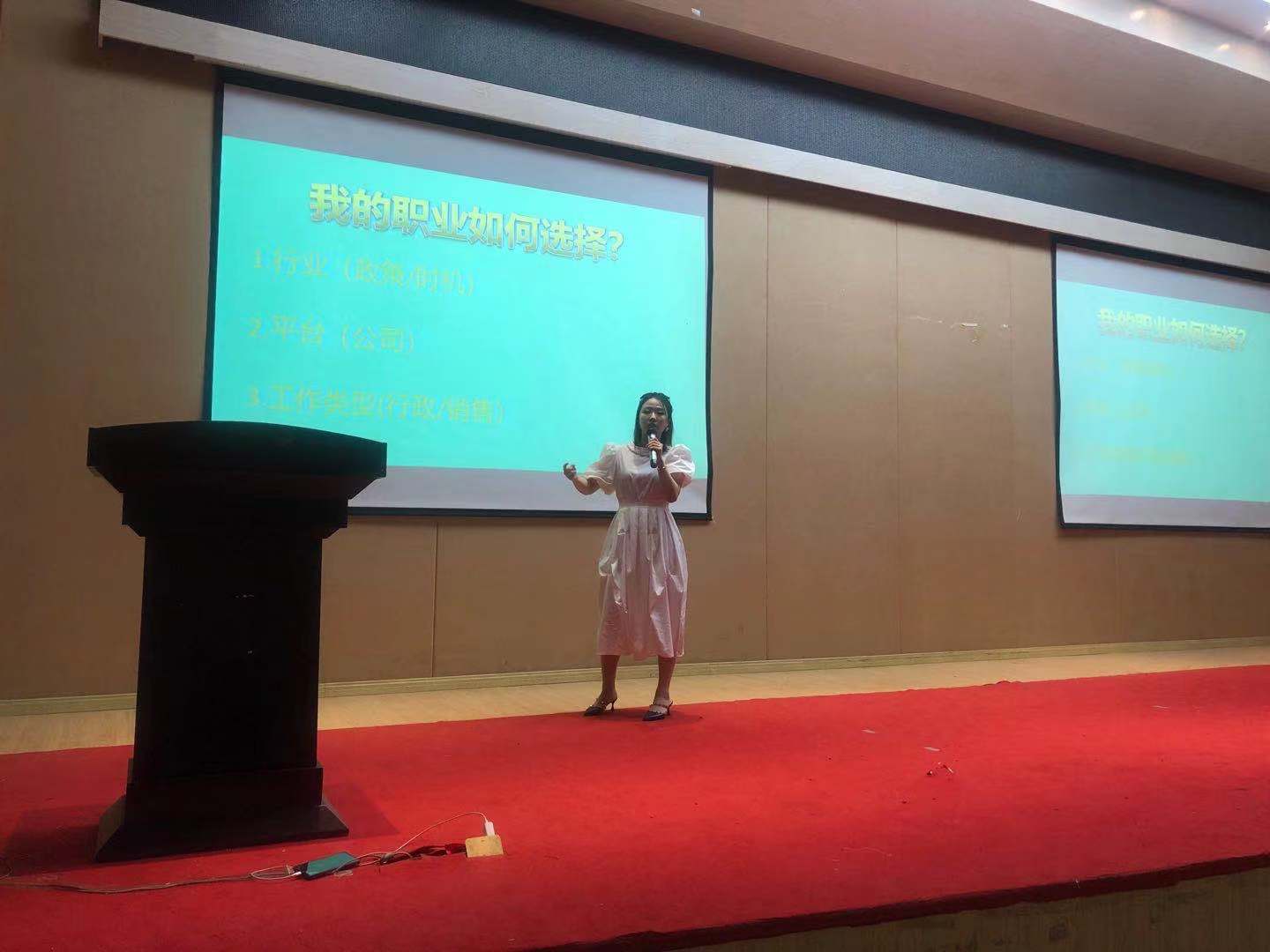 校友代表2020届毕业生刘婷娴和2014届毕业生陈景华受邀分享就业心得。刘婷娴对在校毕业生提出了两点建议:1.能吃苦,学会忍耐;2.选择适合自己且有成长空间的工作;随后,2014届毕业生陈景华学长也通过线上方式分享了他的就业经验,提醒同学们树立正确的择业观、就业观,根据自身情况,努力发挥自己的才能,学无止境,热爱工作和生活,做出有利于国家和社会的事情。