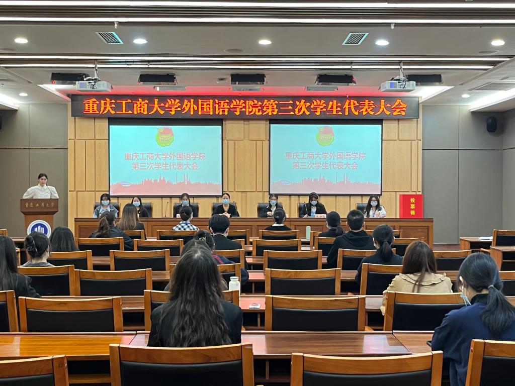 2022年11月5日星期六晚,永利集团3044am第三次学生代表大会在图书馆一会议室成功举办。永利集团3044am党委副书记吴欢欢、分团委书记周利民(线上)、校学生会主席团成员李科璇及70名学生代表参加了本次会议。大会由20英语一班姚赟杰同学主持。