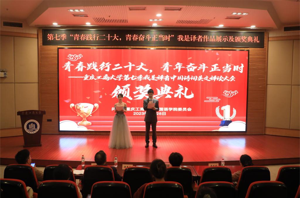 为深入学习领会习近平总书记关于青年工作的重要思想,贯彻落实党的二十大精神,弘扬中华民族优秀传统文化,通过营造良好的外语学习氛围,助力提升同学们的翻译水平和学以致用的能力,经过作品征集、作品评审,永利集团3044am分团委成功举办了重庆工商大学第七季“我是译者”中国诗词英文译读大会。本次活动以“青春践行二十大,青年奋斗正当时”为主题,翻译的作品不仅包含中国经典古诗词,还增加了党的二十大金句的内容,吸引了学校近百名学生参加。