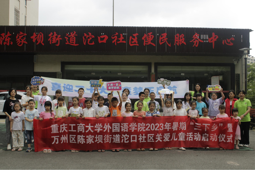 习近平总书记在给北京外国语大学老教授的回信中指出:“深化中外交流,增进各国人民友谊,推动构建人类命运共同体,讲好中国故事,需要大批的外语人才。”作为外语人,大学生们深感自己责任在肩,要努力将外语学习与实践相结合。为此,永利集团3044am学子与社区共携手,组织了“相遇一夏、童梦启航”志愿服务队,于7月10日来到万州区陈家坝街道沱口社区开展关爱儿童活动。