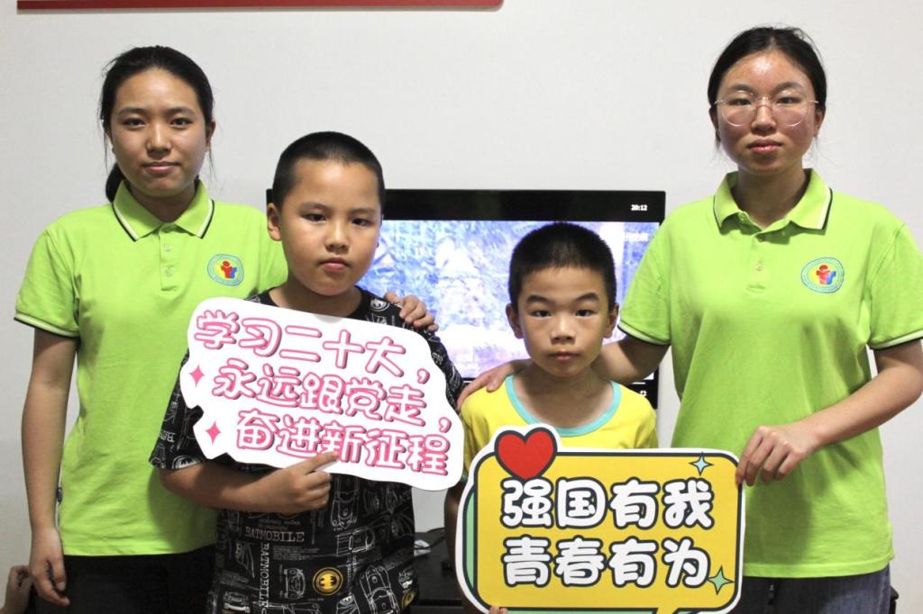 志愿者和小朋友合影