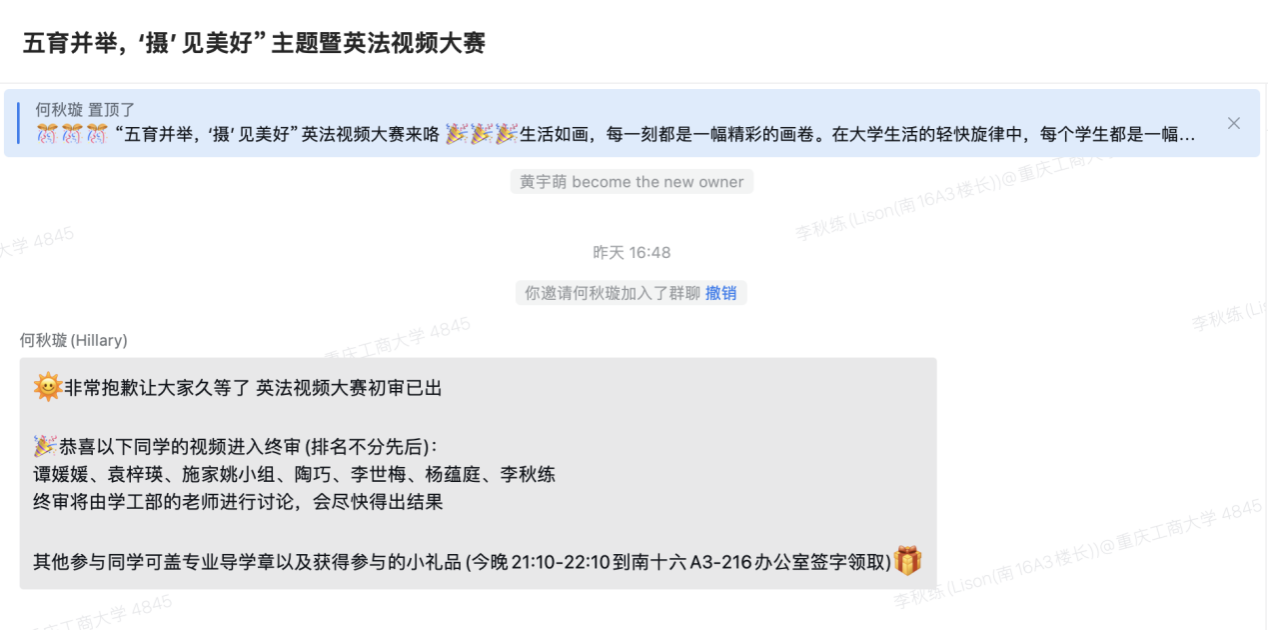 2023年11月7日—2023年11月17日,永利集团3044am党员服务站楼管会成功举办了“五育并举,‘摄’见美好”主题暨英法视频大赛。本次活动对象为南十六A3全体同学。
