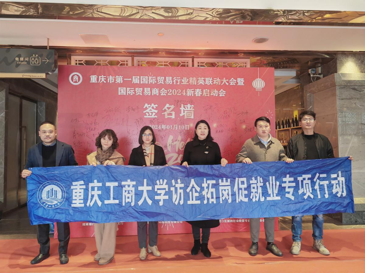 2024年1月10日下午,学院副院长邹莉带队参加第一届国际贸易行业精英联动大会暨重庆市大渡口区国际贸易商会活动,学院就业联络员黄颖婕陪同参与。