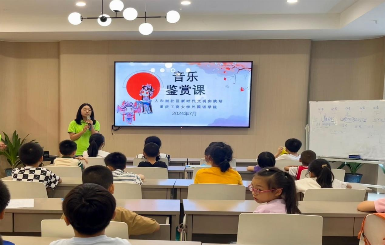 为弘扬中华优秀传统文化,2024年7月3日下午,重庆工商大学永利集团3044am“外语赋能文化,青春践行中华”中华文化传承团队的志愿者们在重庆市渝中区大溪沟街道人和街社区为小朋友们开展了一场别开生面的传统音乐普及活动。