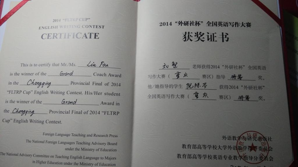 我校学子在2014“外研社杯”全国英语演讲比赛、写作比赛重庆赛区选拔赛中喜获佳绩