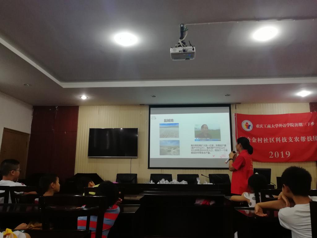 为深入学习党的十九大精神和落实学习近平新时代中国特色社会主义思想,助力打赢打好脱贫攻坚战,7月11日至7月12日,重庆工商大学外语学院科技支农帮扶团在石坪桥街道冶金村社区顺利开展了“科技支农”系列主题活动。具体开展了观影会、趣味科学课、垃圾分类特色活动以及爱心辅导等活动,以实际行动助力乡村发展。