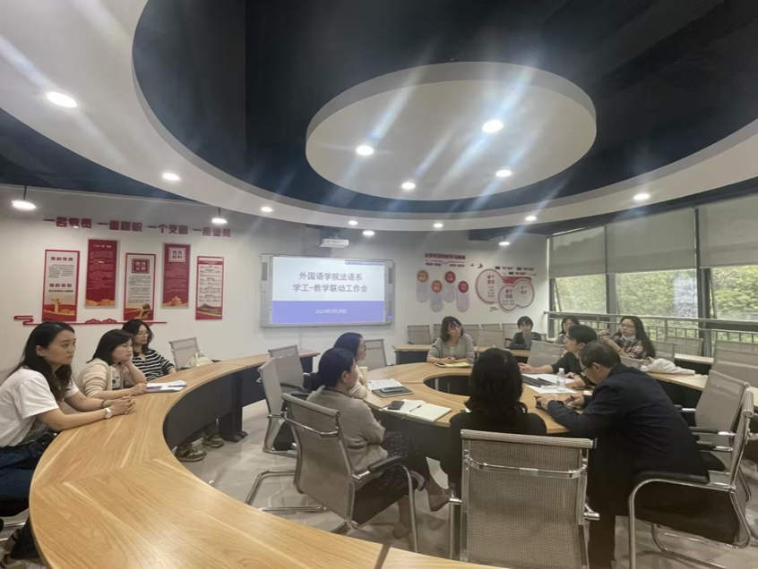 会议分别由法语系主任周渝、英语系副主任刘明主持。学业促进专项工作教师、辅导员杨香艳对学生学业情况进行了系统分析,就学分绩点、学生补考率等多个方面分别进行了横向和纵向对比;辅导员们针对各自所带班级的学风和班风情况进行通报,学工队伍和系部还对特情学生情况进行了交流;特别就2024届毕业生就业工作进行了深入讨论。会后法语系周渝主任和学工队伍一起走访学生寝室,深入社区关心学生职业发展。