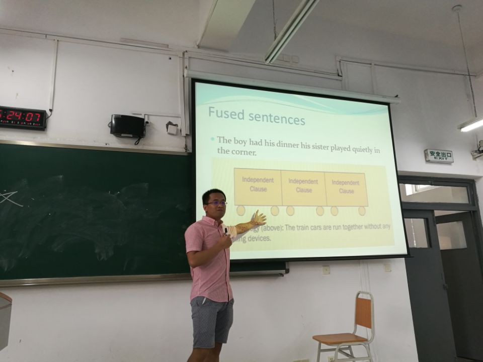 首先,经全体教师提名推荐的六名优秀教师进行了示范课展示。其中四位老师展示了大学英语读写译课程的设计及讲授。董茜老师充分调动学生参与课堂活动,在要求学生进行duty report的基础上,引导学生进行同伴评价,营造了积极活跃的课堂氛围。罗志高老师大量利用手机、网络、视频、二维码等现代科技手段,建设技术型课堂,其新颖的教学方式让人眼前一亮。陈丹杰老师系统地讲解了一整个单元的课程设计,其中写作部分借鉴了翻转课堂的理念,在学生课前阅读范例、发现写作标准、进行自主思考后,再进行课堂教学,为写作教学的革新进行了示范。牛靖懿老师开展了大量有趣多样的课堂活动,要求学生课前进行与课文主题相关的duty report,并围绕课文主题引导学生进行即兴辩论,为课文学习作了充分的知识储备与思考铺垫。刁洪老师专门就写作课程进行了展示,利用典型的错句引入run-on sentence的主题,并在整个教学课程中以提问与互动吸引学生注意,为教学效果的提升进行了示范。最后左筱林老师展示了听说课的讲授,将王者荣耀及时事新闻融入听力与口语训练,其教学素材的多样性与趣味性给人以启发。六位教师的课堂精彩纷呈,各有千秋。