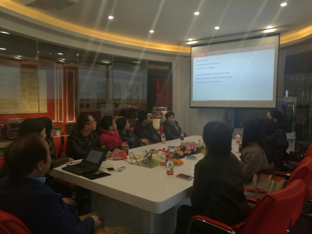 2017年12月1日下午,外语学院英语系曹丽娟、刘晓远、郭晓俐、季峥、张林玲、李勤等十多位教师在系主任邹莉老师的带领下前往重庆璧山工业园区,对我院两家实习基地公司,重庆大江动力设备制造有限公司和重庆博张机电设备有限公司开展了集体调研活动。两家企业的共同特点是产品独具特色,在国际市场独具竞争力,近几年来海外市场规模扩张迅猛、业务与销售额不断攀升,因而对外语贸易类人才存在相当的需求。