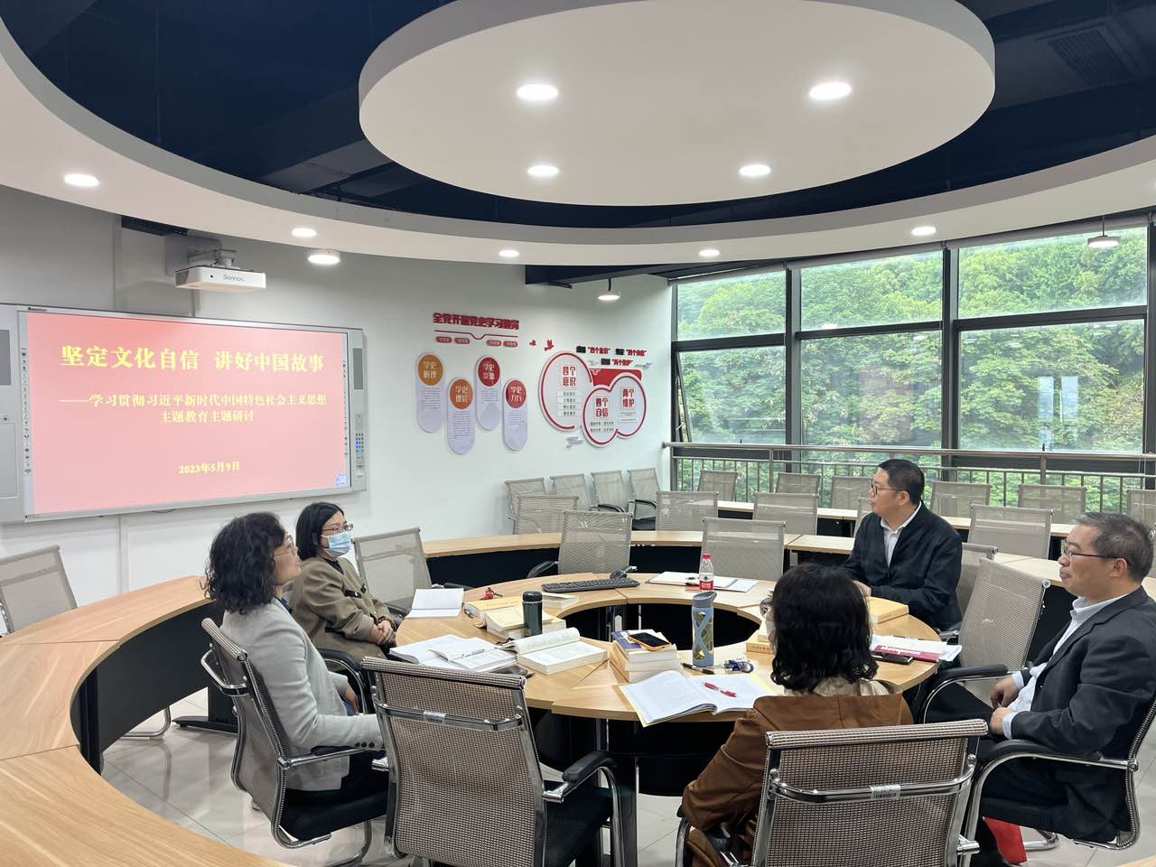 本次学习采取集中学习、交流讨论和主题研讨的方式进行。会上,采取原原本本读原文的方式进行了领学学习。党委委员、组织员黄生领学了《习近平著作选读》第二卷中的《不断增强人民群众获得感幸福感安全感》,《习近平新时代中国特色社会主义思想专题摘编》中的《铸就社会主义文化新辉煌》,党的二十大报告中的《推进文化自信自强 铸就社会主义文化新辉煌》的部分内容。综合办主任黄志婕领学了习近平总书记有关主题教育的系列重要讲话。党委书记唐春秋做了中心发言,黄生、黄志婕进行了交流发言,副院长刘繁和邹莉分别谈了心得体会。集体学习后,与会人员围绕“坚定文化自信 讲好中国故事”开展了主题研讨,从实际工作出发,交流教育教学过程中的具体案例和体会。