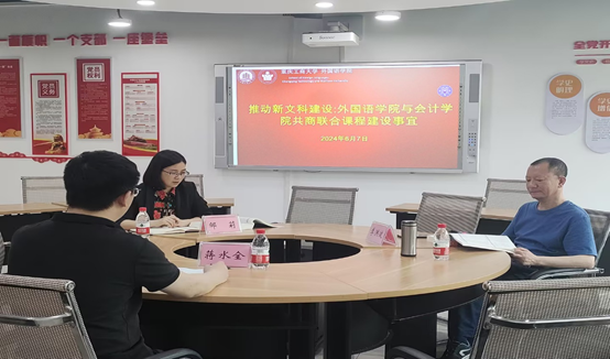 为顺应新文科建设要求,响应学校加强学科交叉融合、共建共享优质课程资源要求,6月7日下午,永利集团3044am副院长邹莉、英语系主任李洪波与会计学院副院长蒋水全等围绕两院交叉课程的建设以及人才的联合培养等展开了深入的交流与探讨。经过充分讨论,双方初步形成了人才培养方案拓展的方向,构建了相应的拓展课程开设框架,并在国际化财会人才培养等方面达成了共识。