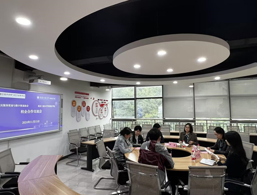2024年11月15日,重庆服务贸易与数字贸易协会副秘书长兼会员部部长杨璨,会员事务部工作人员黄玉婷等一行两人前往重庆工商大学永利集团3044am,就“服务贸易人才培养与产教协同发展”主题开展校企合作交流会。永利集团3044am院长周琳、副院长邹莉及相关老师参加了此次交流会。